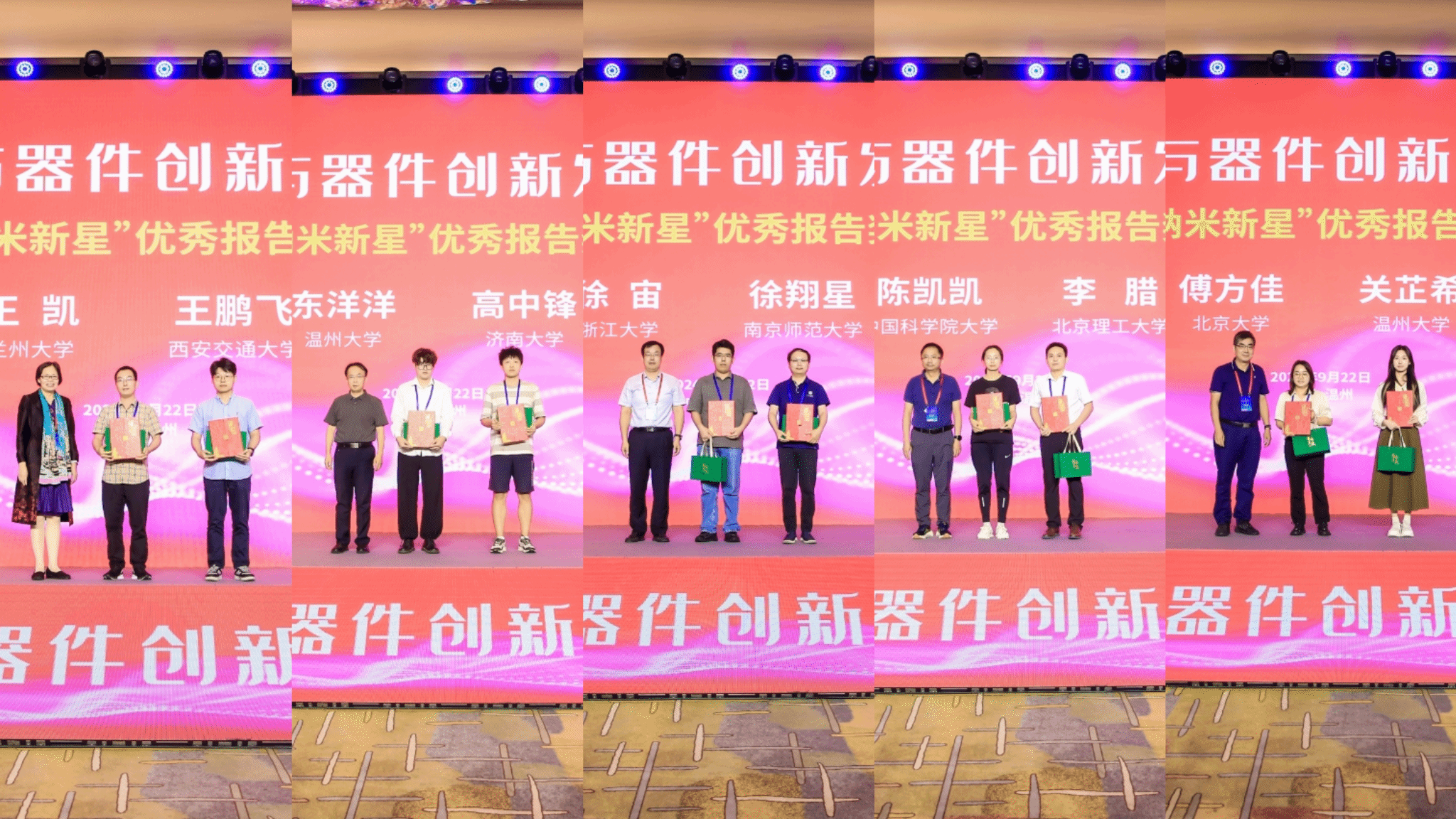 闭幕式上举行了“纳米新星”优秀报告奖,中国科学院大学陈凯凯、北京大学傅方佳等10位青年学者获奖。