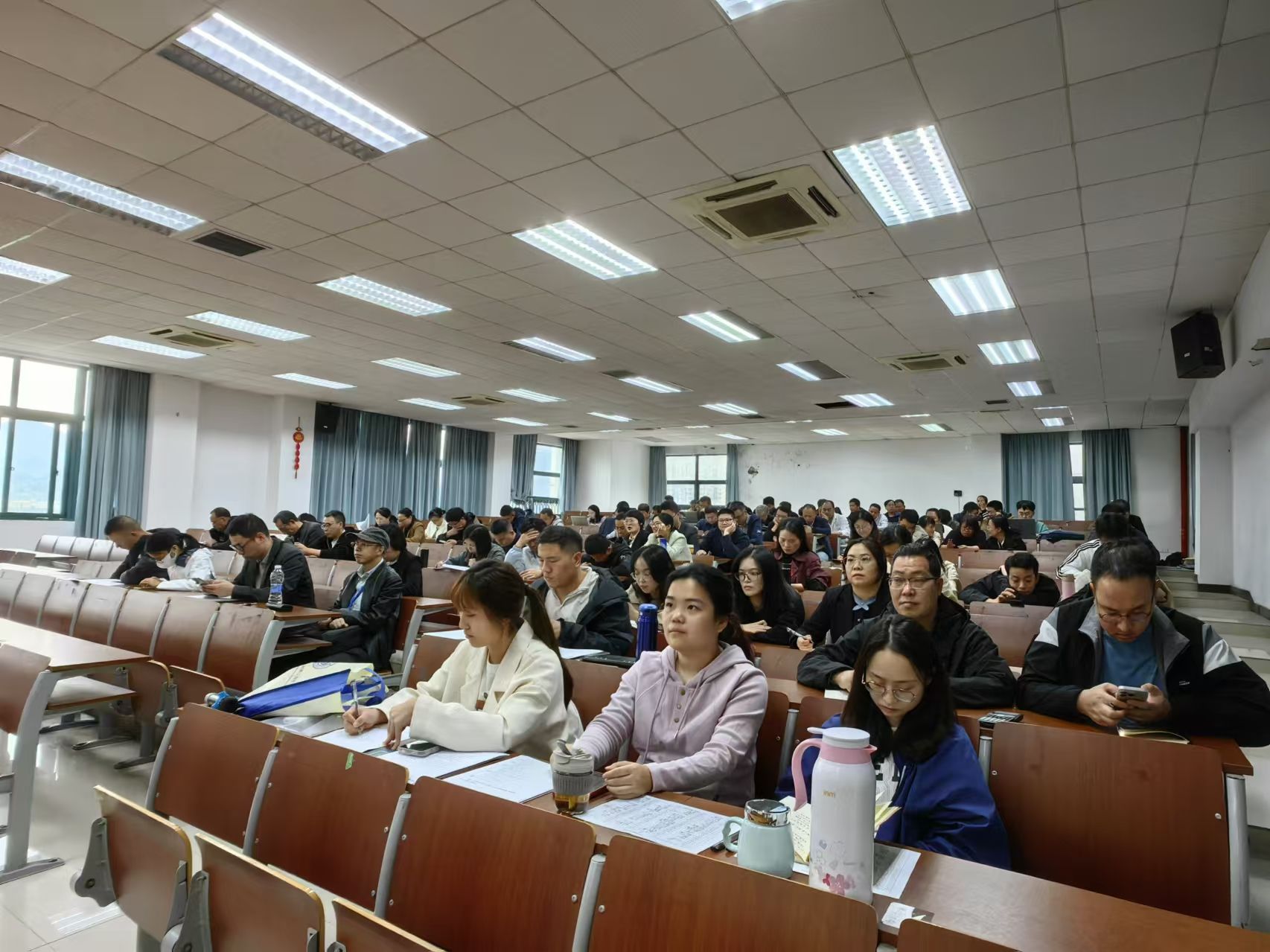 109位教职工在南11C401分会场参加会议。此次大会旨在统一思想、明确目标、凝聚力量,为即将到来的审核评估工作吹响冲锋号。