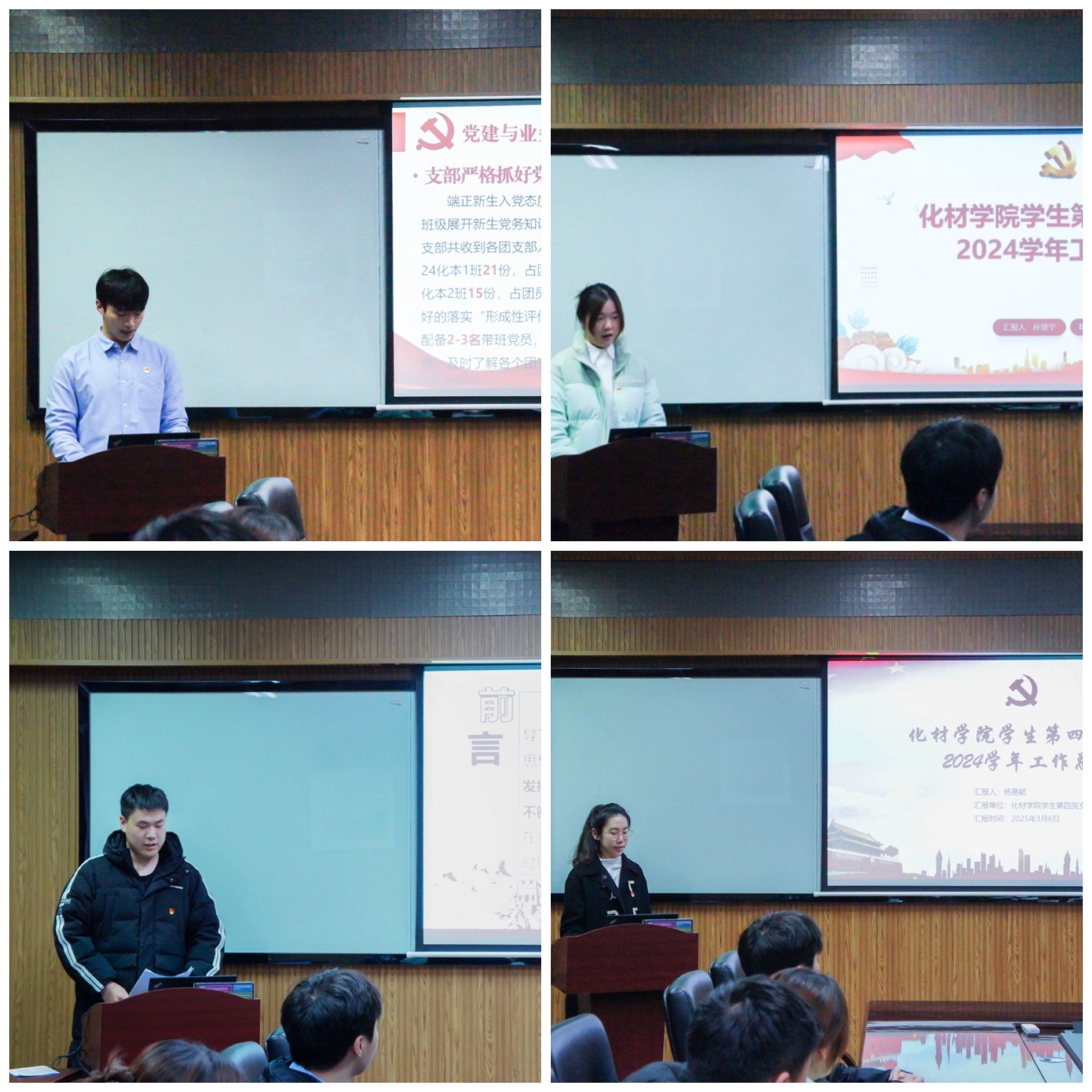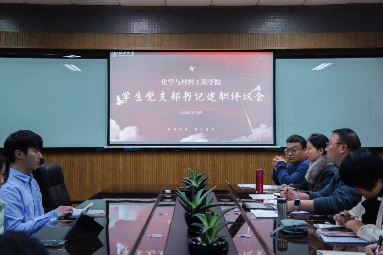 第三次党代会决策部署,进一步加强党支部标准化建设,3月6日晚,学院2024年度学生党支部书记述职评议会于化材楼11B204会议室举行。学院党委副书记王晓华,学院专职组织员陈旭,各学生党支部指导老师参加本次会议,会议由学院学工办主任兼团委书记、学生党建工作指导教师邹涌彬主持。