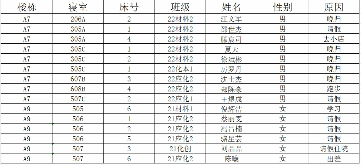 (2)若有学生在其他宿舍舍友可告知其返回核实;