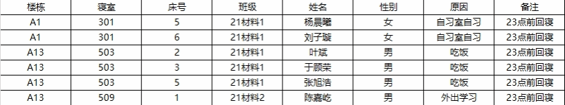 (2)若有学生在其他宿舍舍友可告知其返回核实;