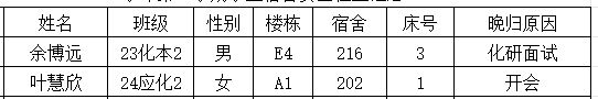(2)若有学生在其他宿舍舍友可告知其返回核实;