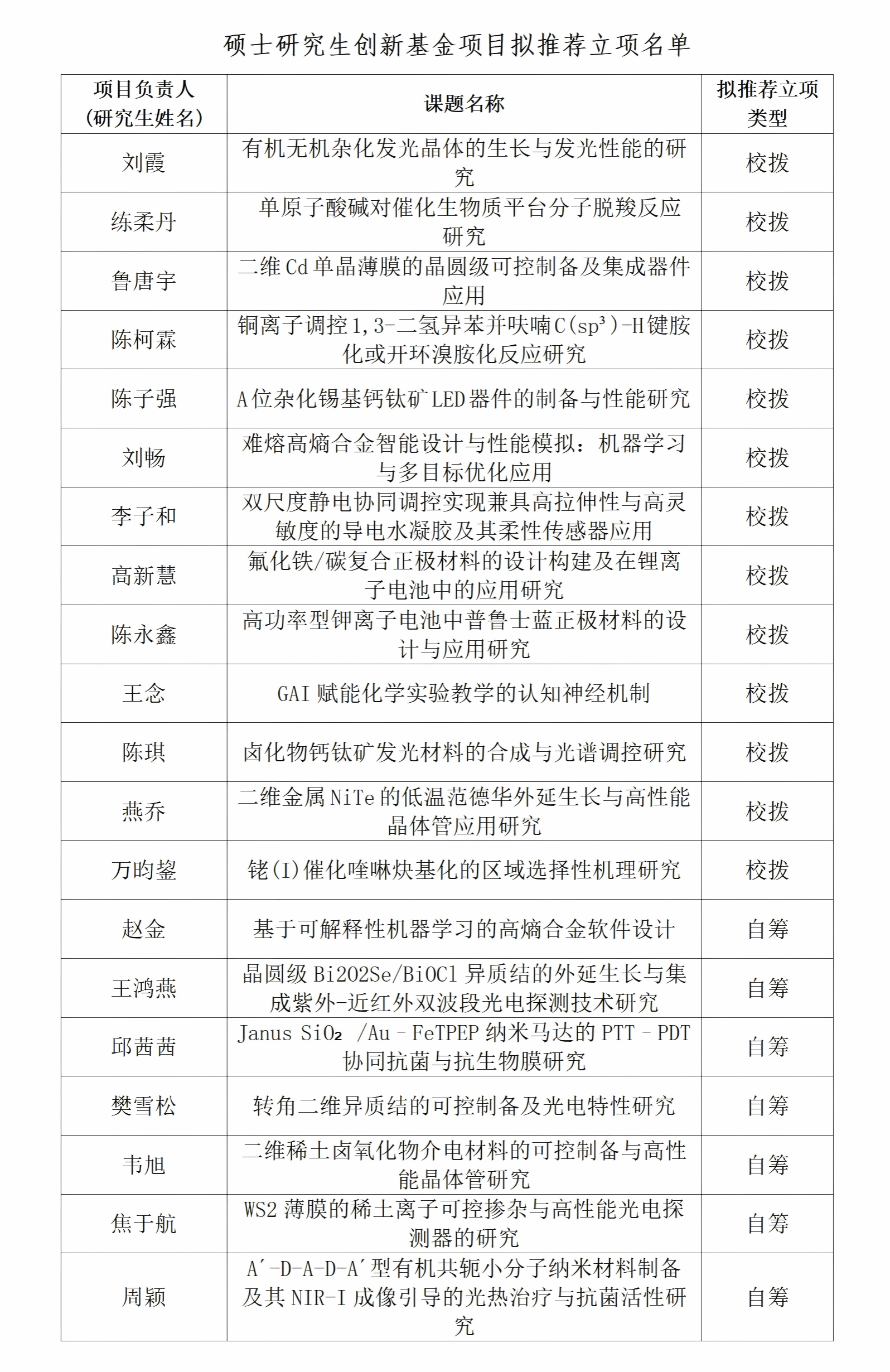 2025年度研究生创新基金项目拟推荐立项结果予以公示。