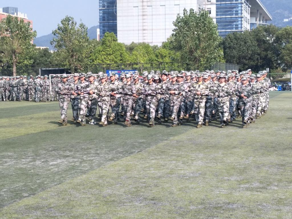 2019年10月10日星期四,这是同学们军训的第三天,这天的天气也不如前两天的秋风习习,温州的太阳开始对大家喜笑颜开。操场上,大家身着整齐的军装,汗水也顺着大家的脸颊缓缓滴下。望着同学们挺拔的身影,被汗水浸湿的衣服,便能深深体会到大家在军训中确实锻炼了自己的毅力。