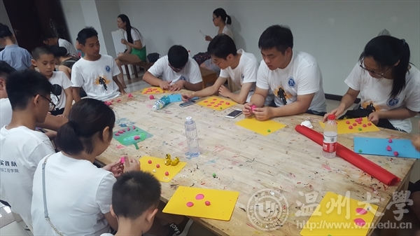 早上8点,队员们在华表集合踏上了暑期社会实践活动的正式征程。九点三十分我们抵达了目的地——温州非物质文化遗产博物馆,并在解说员的带领下依次参观了瓯海区馆、龙湾区馆、鹿城区馆、龙舟馆、乐清县馆以及廊桥馆。在这里,有色彩鲜明的彩石镶嵌图,有恢宏大气的孔子周游列国玉雕,有鲜活如水墨画、铅笔画般的发绣、瓯绣,有细如发丝的细纹刻纸,有集众生百相于一体的首饰龙,有风格独特的温州蛋画,竹壳雕,还有只敲而不弹的牛筋琴。10点25分,我们有幸在一位米塑老师的指导下,与小朋友们以及部分小朋友的家长一起学习制作米塑。在经历了多次失败,加工重造,反复琢磨之后,我们每人制作了一朵小花,并与老师合照,为这堂课画上了句号。最后,马嘉飞同学作为我们9人小组的代表对这位米塑老师进行了采访。至此,我们小分队第一天的社会活动圆满结束。 点滴实践,点滴成长,参观温州非物质文化遗产博物馆不仅让我们认识了部分温州文化,加深了对温州的印象,也让我们在活动交流中进一步增强了对彼此间的认识。这正是我们开展此次暑期社会实践的初衷,毕竟我们能在学校里看到的并不是温州的全貌,走出校园,走进温州,走进温州的人文、历史、社会,我们才能真正领会温州的鲜活生动。期待我们接下来的表现吧!