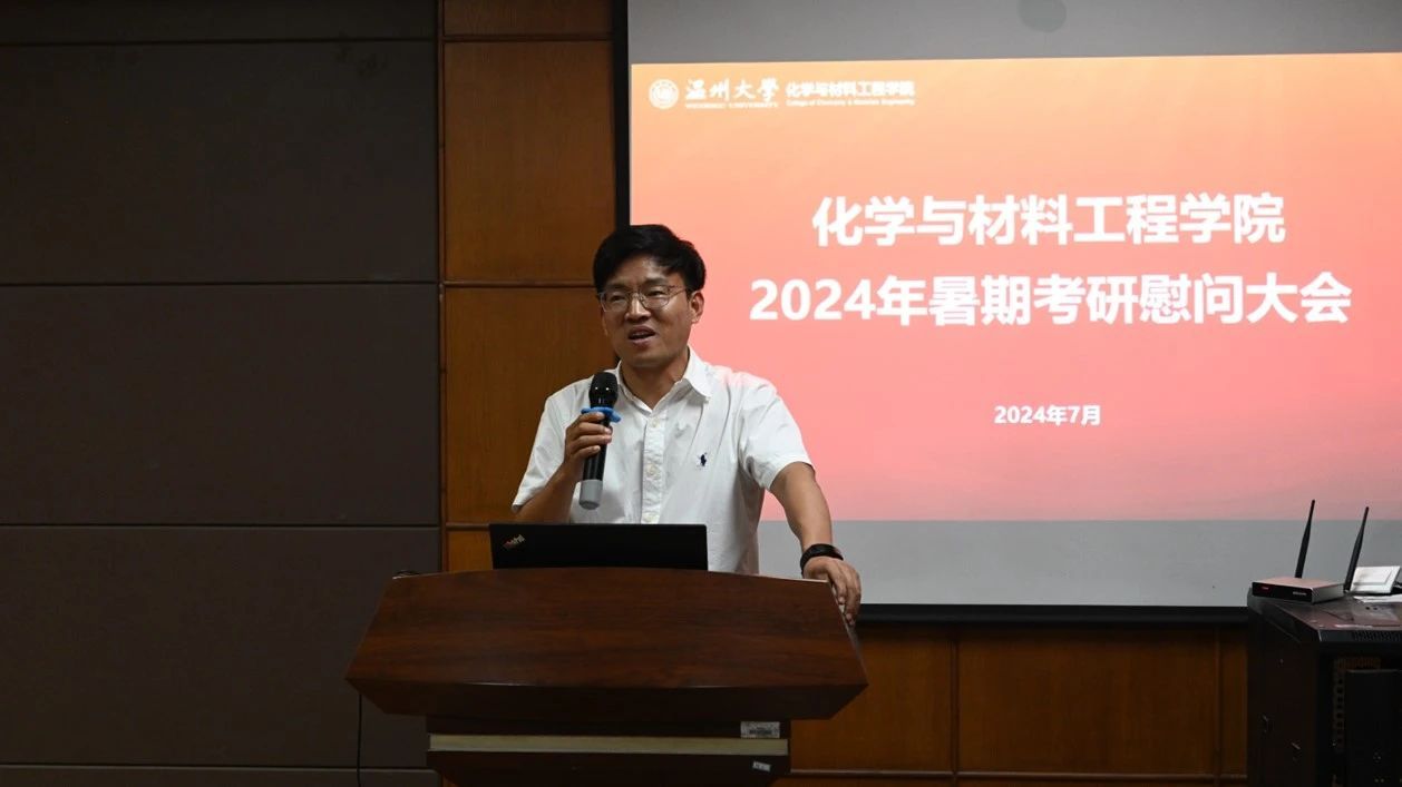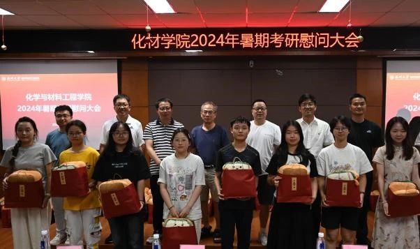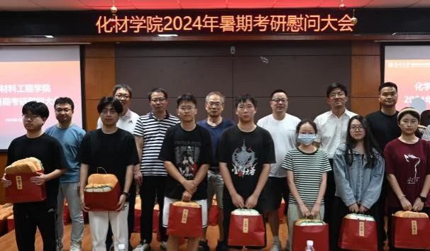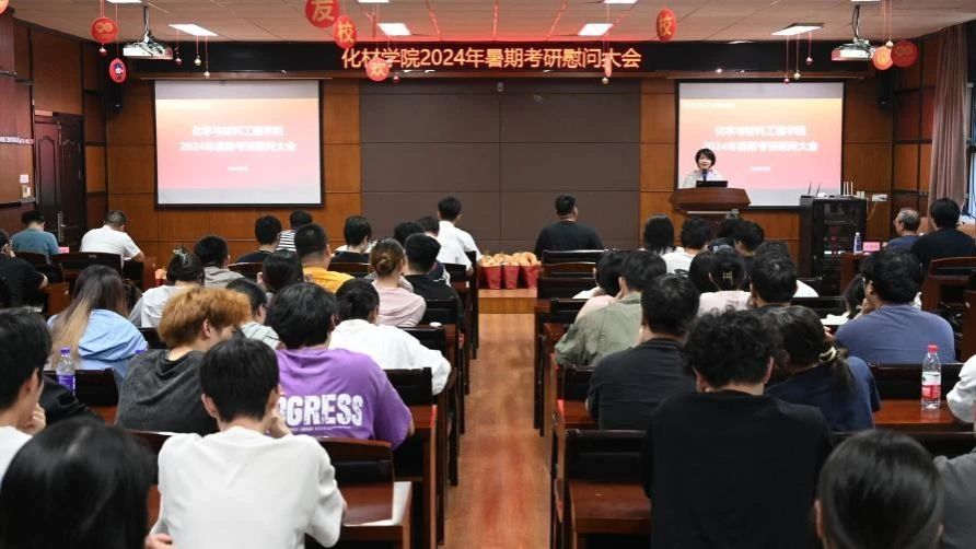 于7月22日下午在11B208报告厅召开考研动员大会暨暑期考研慰问大会。学院党委书记邹超,副院长张礼杰,院长助理、材料系主任杨昕宇,化学系主任方国勇,以及班主任代表出席,大会由学院党委副书记王晓华主持。