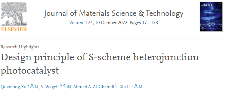 徐全龙副教授在国际著名期刊《Journal of Materials Science & Technology》发表了题为“Design principle of S-scheme heterojunction photocatalyst”的论文。该文章提出了构建S型异质结光催化剂的基本原则,总结出四种类型的S型异质结,分析了S型异质结中各组分的费米能级弯曲行为和表征方法,这有助于加强和促进光催化的基础理论。