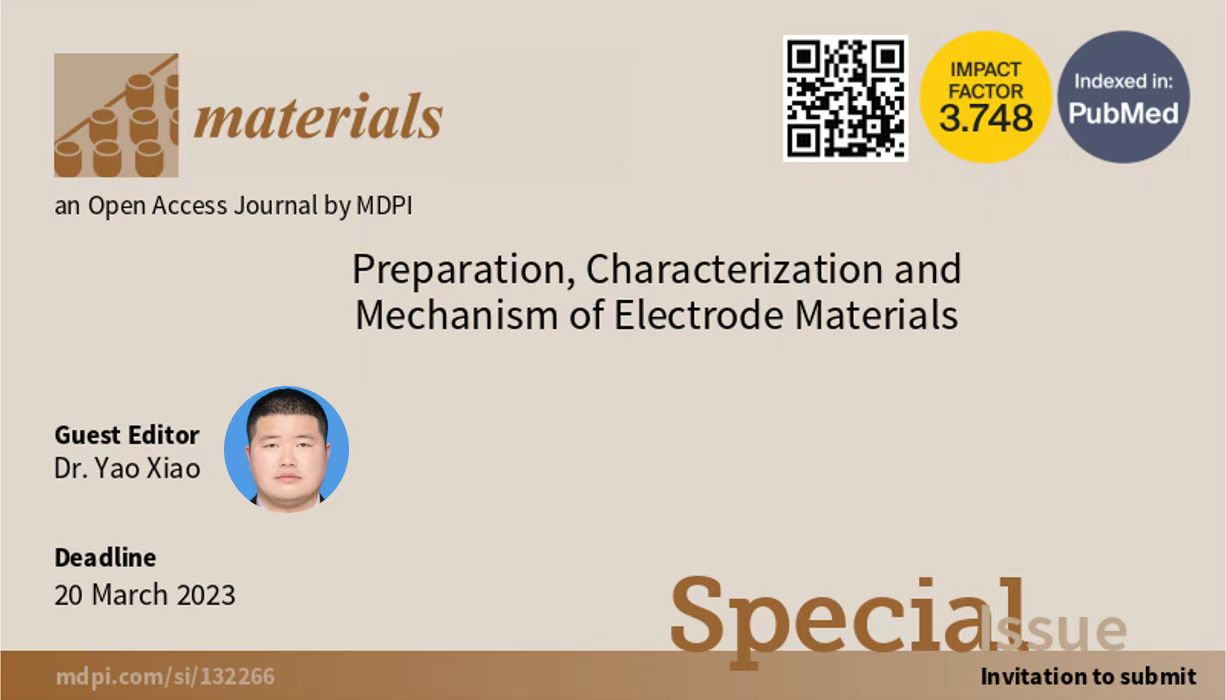 碳中和技术创新研究院肖遥博士受邀担任国际期刊《Materials》(《材料》)的专刊“Preparation, Characterization and Mechanism of Electrode Materials”(电极材料的制备、表征及机理)的Guest Editor(客座主编)。该专刊将发表“电极材料的制备、表征及机理”相关领域的研究论文和综述文章,旨在邀请各个领域的专家学者发表高质量、前瞻性的重要著作,为促进各领域科学家之间的合作提供一个独特的高水平论坛。