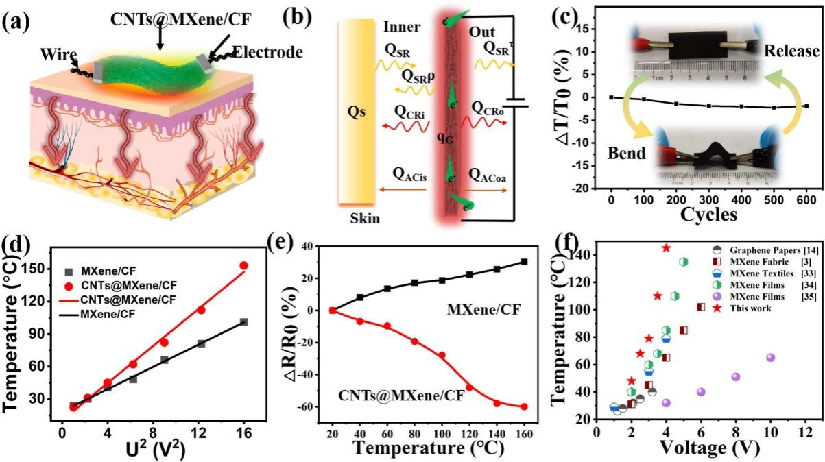 在寒冷的环境中,借助柔性可穿戴式加热装置保持体温相对恒定,是确保人体热舒适和各项功能正常运行的关键。近年来,碳基电热膜因其发热效率高、安全性能突出、红外理疗效果优异而受到广泛关注。为了满足人类生活的实际需要,电热膜逐渐被赋予了电磁屏蔽 (EMI)、光热和抗菌等多功能性能。这种多功能薄膜也是现代集成电子和军事、航空航天、人工智能和可穿戴设备等领域非常理想的产品。