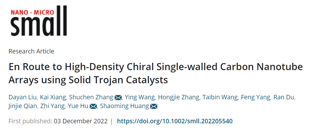 这一成果近期以“En Route to High-Density Chiral Single-walled Carbon Nanotube Arrays using Solid Trojan Catalysts”为题发表在国际期刊《Small》上,男同性恋AV