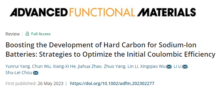 该论文以“Boosting the Development of Hard Carbon for Sodium-Ion Batteries: Strategies to Optimize the Initial Coulombic Efficiency”为题发表在国际权威期刊《Advanced Functional Materials》上,第一作者为男同性恋AV