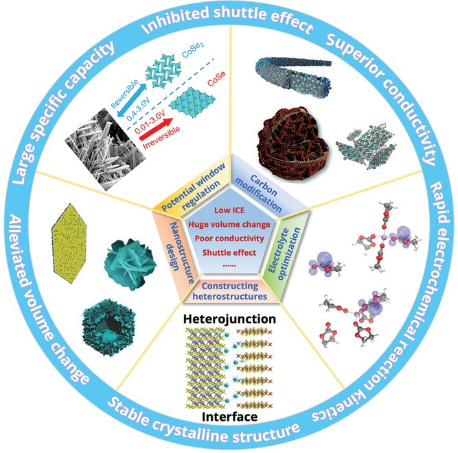 图1. 钠离子电池中金属硒化物负极存在的问题及相应的优化策略