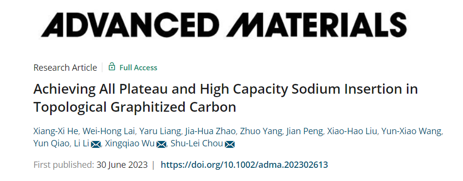该研究以“Achieving All Plateau and High Capacity Sodium Insertion in Topological Graphitized Carbon”为题发表在材料领域国际顶级学术期刊《Advanced Materials》。男同性恋AV