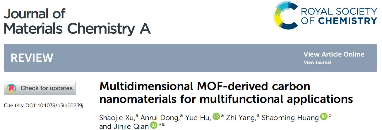 Shaojie Xu, Anrui Dong, Yue Hu, Zhi Yang, Shaoming Huang and Jinjie Qian. Multidimensional MOF-derived carbon nanomaterials for multifunctional applications. J. Mater. Chem. A., 2023, Advance Article.