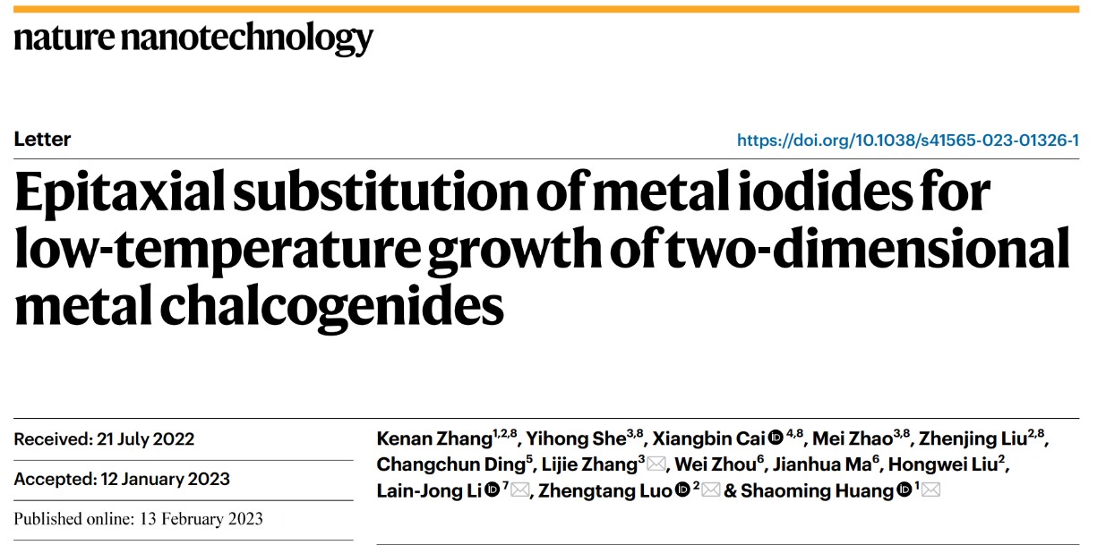 张礼杰与广东工业大学黄少铭、香港大学李连忠、香港科技大学罗正汤等合作,针对二维材料及异质结与半导体芯片单片集成面临的温度限制难题,设计了一种普适性的范德华衬底协同二维碘化物低温原位替代生长方法,实现了 17 种高质量二维金属硫化物及其异质结的超低温可控生长(≤ 400℃)。结合理论计算,阐明了超低温原位替代生长机理,揭示了硫元素替换碘元素的低取代势垒微观本质,提出了碘化物硫(硒、碲)化的生长机理:替换反应优先发生在缺陷或边缘区域,之后的原子替代能垒大幅下降,发生了类似涟漪效应的连续 S-I 原子替换反应。并且在< 400℃下实现了多种二维材料及其异质结的大面积阵列集成,所制备的材料具有高的结晶质量和优异的光电性能。为二维材料与半导体芯片后端制造工艺的温度兼容性问题提供了一种可行性方案,并且为二维材料及其异质结的单片集成提供了一种新思路。该研究成果以“Epitaxial substitution of metal iodides for low-temperature growth of two-dimensional metal chalcogenides”为题目发表在在材料领域国际顶级学术期刊《Nature Nanotechnology》,男同性恋AV