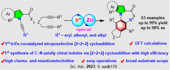 铱/锌共催化的化学和对映选择性[2+2+2]环加成反应构建C-N轴手性吲哚和吡咯化合物