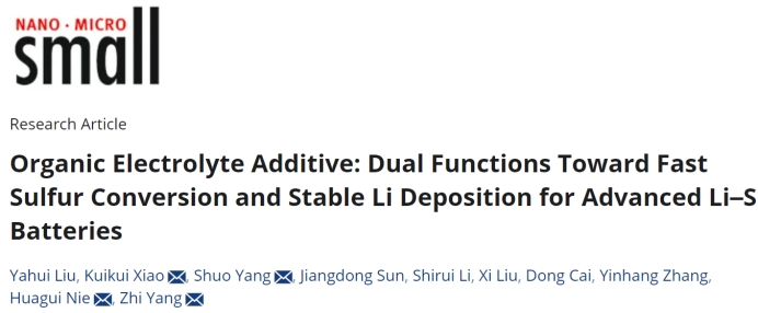 该研究以“Organic Electrolyte Additive: Dual Functions toward Fast Sulfur Conversion and Stable Li Deposition for Advanced Li–S Batteries”为题发表在国际顶级学术期刊《Small》。男同性恋AV