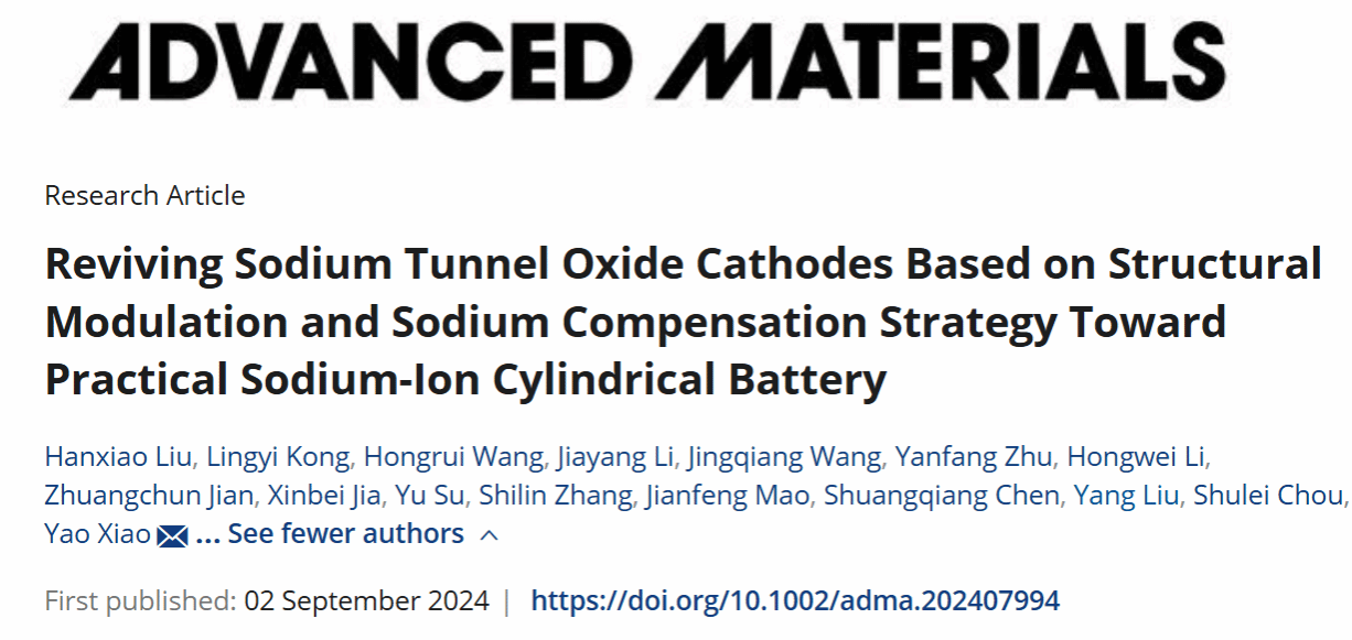 该成果以“Reviving Sodium Tunnel Oxide Cathodes Based on Structural Modulation and Sodium Compensation Strategy Towards Practical Sodium-ion Cylindrical Battery”为题,发表在《Advanced Materials》上,男同性恋AV
