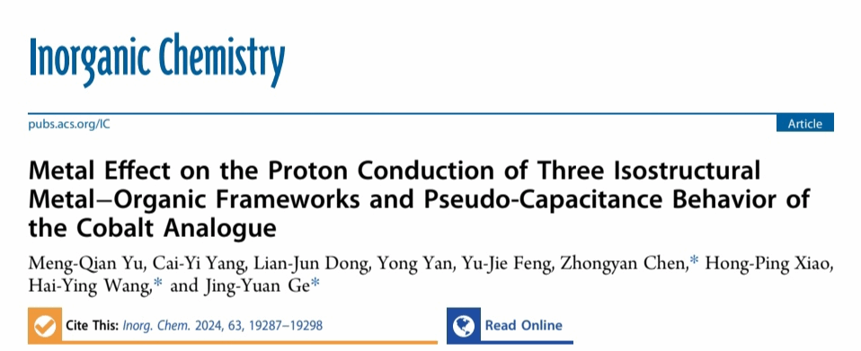 相关研究成果以“Metal Effect on the Proton Conduction of Three Isostructural Metal−Organic Frameworks and Pseudo-Capacitance Behavior of the Cobalt Analogue”为题,近日发表在《Inorganic Chemistry》期刊上,男同性恋AV