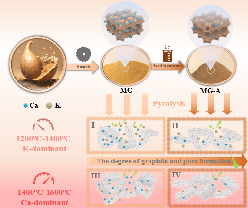 此外,由于存在于硬碳内部的灰分元素会导致电导率低,占据钠离子储存位点等不利影响。所以在碳化之前通常经过预处理以去除灰分元素。然而,随着预处理工艺参数(洗涤时间、酸洗或碱洗)的变化而产生的复杂影响在很大程度上被忽略了。并且刺激性化学品的使用也会带来成本和环境污染等一系列问题。