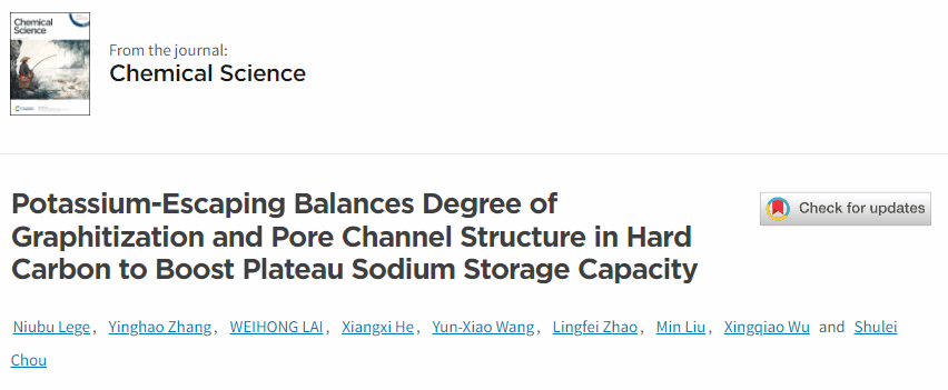 此项工作以Potassium-Escaping Balances Degree of Graphitization and Pore Channel Structure in Hard Carbon to Boost Plateau Sodium Storage Capacity为题发表在国际期刊Chemical Science上,男同性恋AV