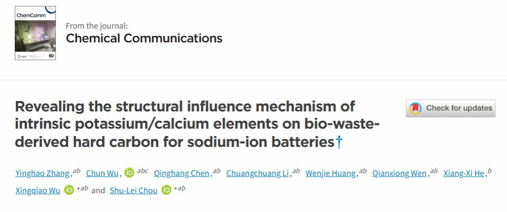 该成果以“Revealing the structural influence mechanism of intrinsic potassium/calcium elements on bio-waste-derived hard carbon for sodium-ion batteries”为题,发表在Chemical Communications上。男同性恋AV