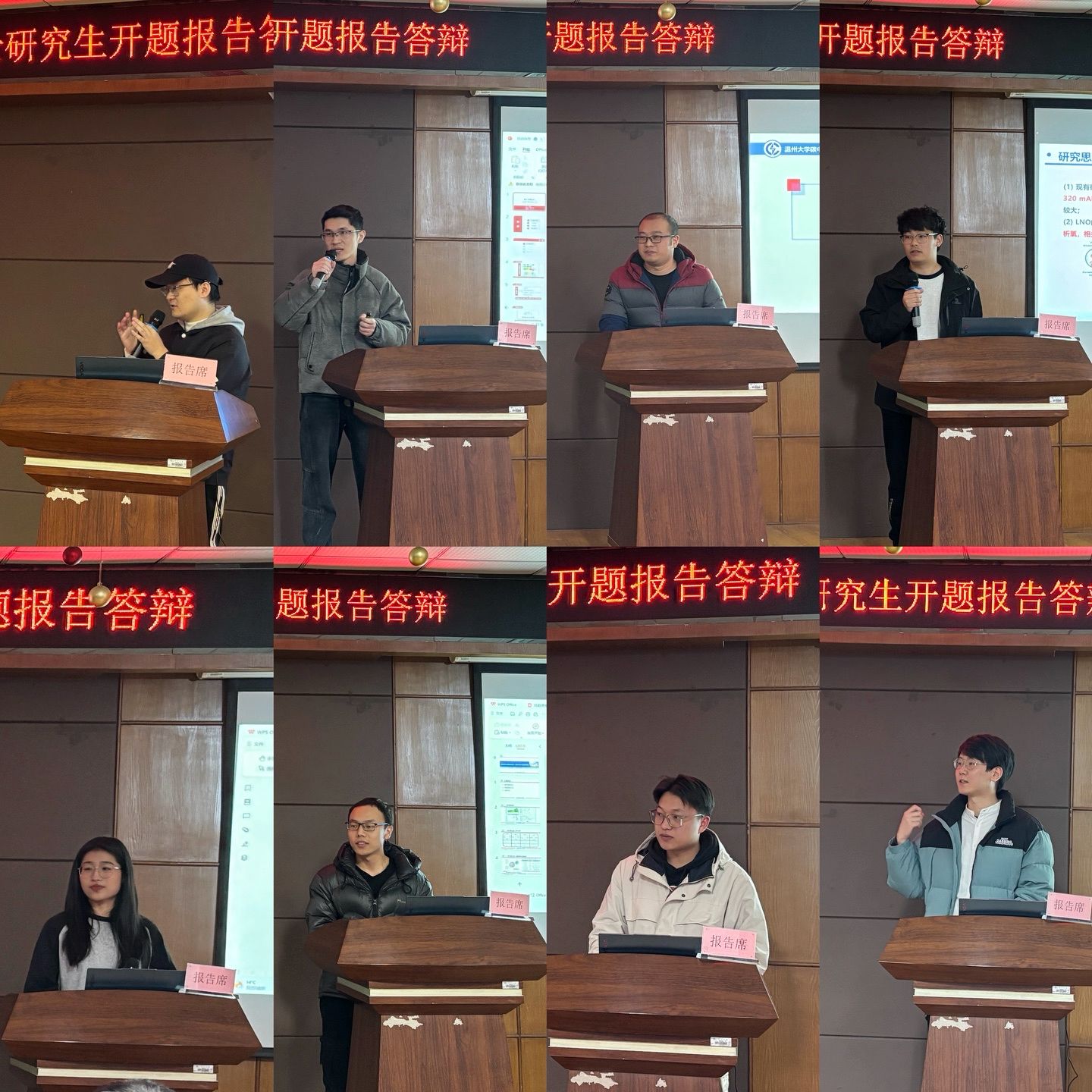 杨植院长、侴术雷教授、潘跃晓教授,碳中和技术创新研究院王佳兆教授担任专家组成员,答辩会由金辉乐副院长主持,14名博士生做开题汇报,博导及学院部分教师、各年级研究生旁听开题答辩会。