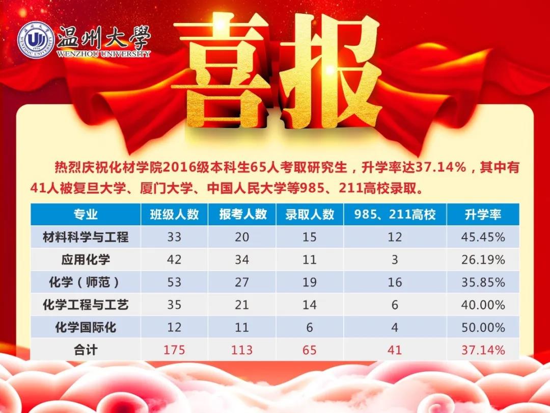 2020届学生考研工作再创佳绩。学院2020届毕业生共175人,113人报考研究生考试,72人过国家复试线,过线人数达到报考人数的63.71%;其中65人成功被录取,录取人数达到报考人数的57.52%,升学人数占全体本科毕业生数的37.14%;有41人被复旦大学、厦门大学、中国人民大学等985、211高校录取,考研录取率和考取名校人数创历史新高,这一切离不开学院良好的学风、院风。