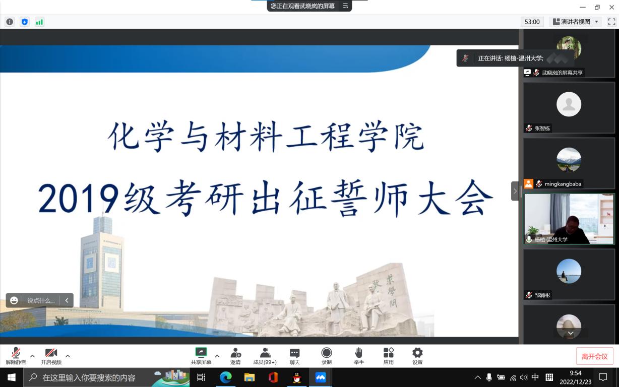 2023届考研出征誓师大会在线上举行。学院领导班子、各系主任、2019级班主任、学生科辅导员以及全体2023届考研学子参加本次誓师大会。