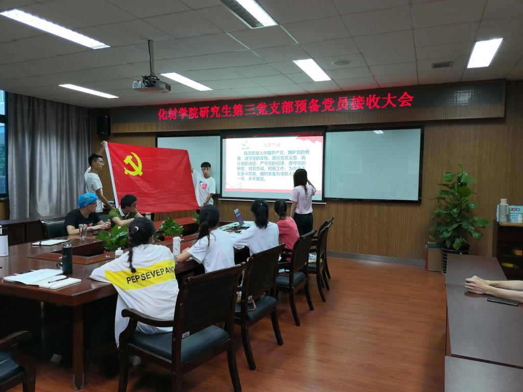 研究生第三党支部在化材楼11B-204会议室召开了预备党员接收大会。本次大会,主要讨论接收汪晓敏同志为预备党员的问题。大会由支部书记贾雅君同志主持,男同性恋AV