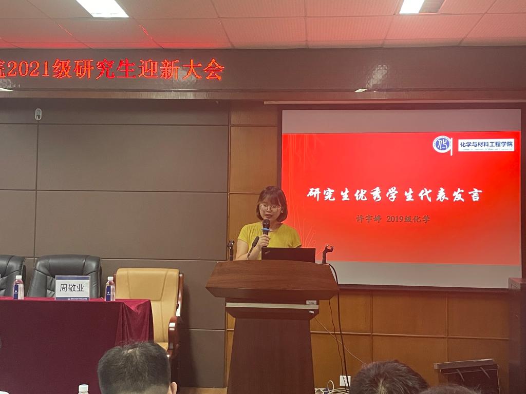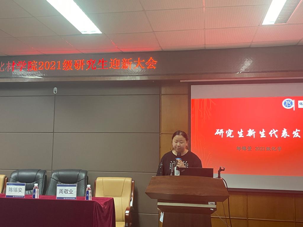 接下来,是研究生代表发言,她们表示,在学习与科研的路上,不论是新手还是老兵,都要秉持一丝不苟的工作原则,鼓励新生在科研的路上要辛勤探索。