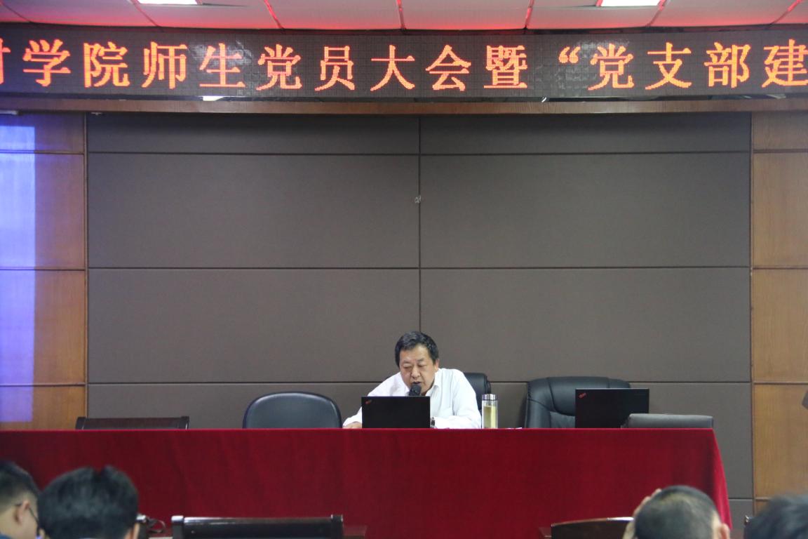 全面从严治党工作的主要任务,强调要将全面从严治党的责任落到实处,切实加强党的政治建设,夯实党建基础;结合具体案例,要求深化廉洁教育活动,认真学习法律法规,严守纪律和规矩,遵守制度和规范,落实好“清廉温大”建设的各项要求,营造风清气正的学院发展氛围。在学习传达学习“党支部建设年”工作部署和要求时,他从“支部建设年”的实施意义、总体思路、建设目标、方法步骤、工作要求等五方面做了详细的阐述。强调学院党组织和党员要在校党委的领导下,落实好学校推进基层党支部建设“五大工程”的部署与任务,抓严抓实党支部建设,发挥好党支部战斗堡垒作用和党员先锋模范作用。要全面落实学校作风建设工作的各项要求,加强学院作风建设,提升效能,服务师生发展,为实现学院和学校发展而不懈奋斗。