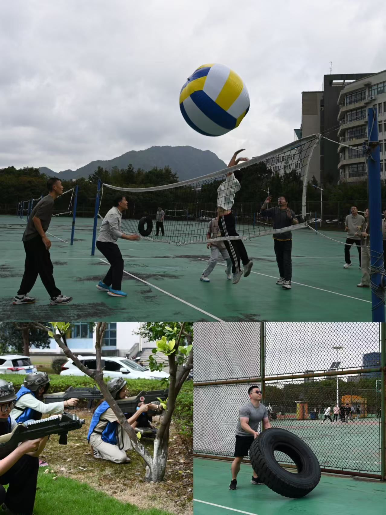 下午15点,本次趣味运动会的重头戏“真人CS”正式开始,活动共分三个环节进行。在第一个环节中,全体人员分为“红蓝”两个小队,分别确定了队名、口号和队长。在专业人员的指导安排下进行一系列的热身运动。第二环节,带队教师对“真人CS”规则进行讲解。第三环节,各小队在指定时间内采取迂回、包抄、吸引、包围、冲锋、狙击、偷袭等各种方式,进行“厮杀”。随着演习战、烟雾战、间谍战的开始,口号声、欢笑声此起彼伏,热闹非凡,活动一直持续三个小时。