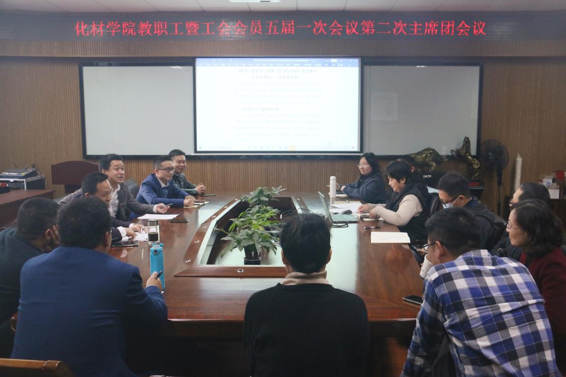 2021年2月28日下午1:30,男同性恋AV 在11B204会议室召开男同性恋AV 教职工暨工会会员五届一次会议第二次主席团会议。男同性恋AV 院长王舜、党委书记熊琳、副院长杨植等学院领导,学院教职工工会主席团出席本次会议。会议由党委书记熊琳主持。