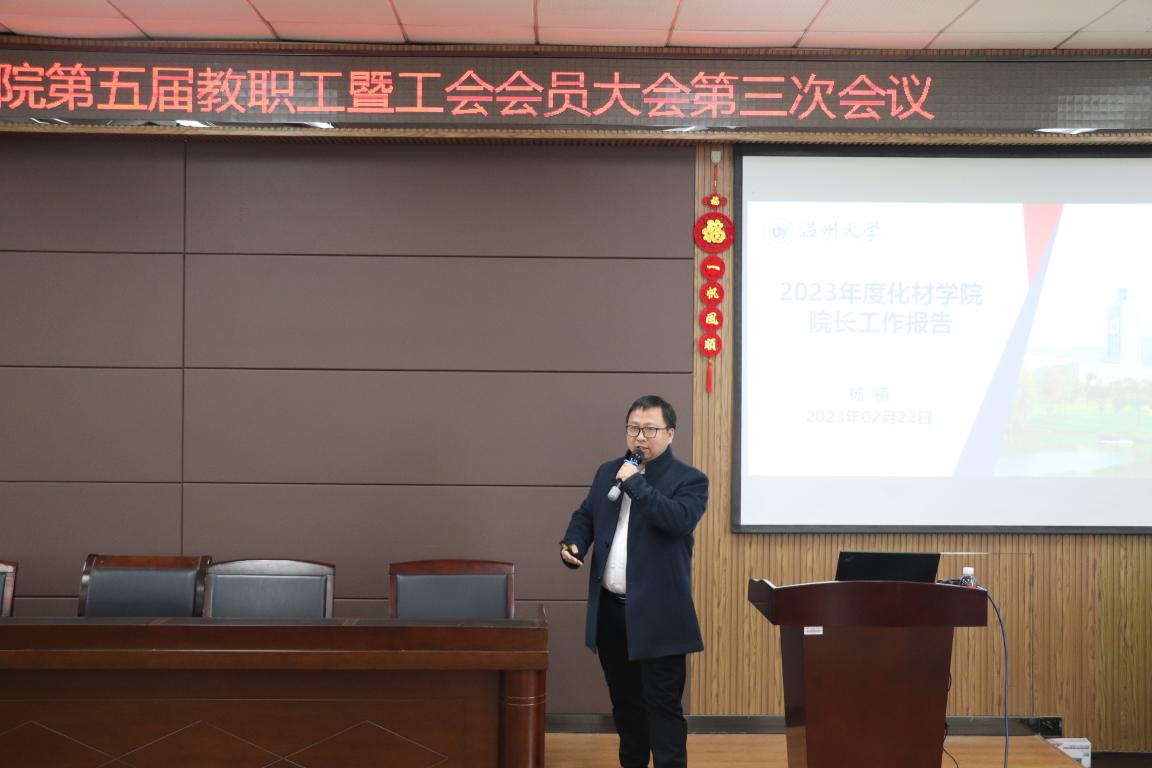 院长杨植作题为《赓续传承,追求卓越,共创未来》的工作报告,就学院2022年度工作总结和2023年度工作计划做相关汇报。全面总结了一年来学院在学科建设、专业建设、人才培养、科学研究、社会服务、队伍建设以及党建工作等方面所取得的成绩。新的一年学院围绕“三大奋斗目标”提出了“十大工作任务”和“十条主题主线”,不断向新目标、新起点、新征程奋力迈进。