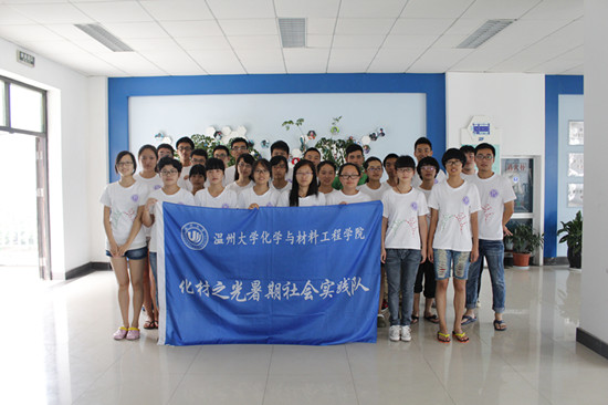 “化材之光”暑期社会实践队的四名队员在队长叶欣涵的带领下走访温州东南碳制品有限公司。