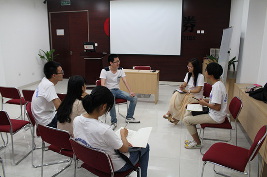 下午,实践队队长叶欣涵学长带领全体实践队队员在学生科进行了今天的工作总结。首先由各小组组长对今天的工作进行了汇报,并且就接下来几天的工作做了大致的安排,然后参与采访的队员交流各自的心得体会。