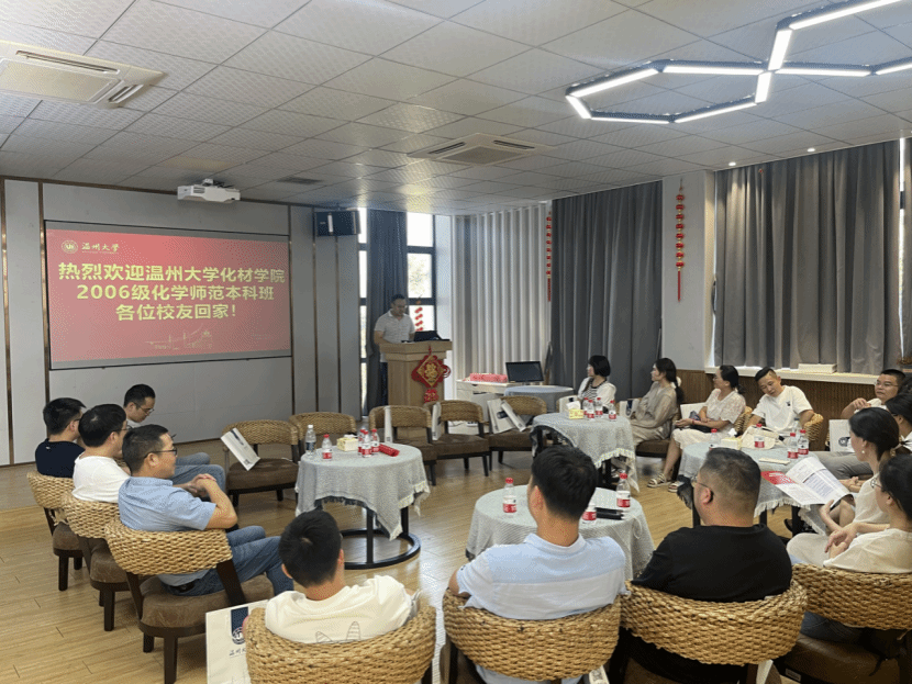 在学院人才之家会议室,学院学工办主任兼团委书记、校友工作负责人邹涌彬老师代表学院热烈欢迎各位校友重返母校,向校友们汇报了学院的历史沿革和近年来在学科发展、科学研究、人才培养和校友工作等方面取得的进展与成就。他表示,学院的发展离不开每一位化材校友的支持,希望校友们一如既往地关注和支持学院建设,为学院的高质量发展贡献力量、共铸辉煌。
