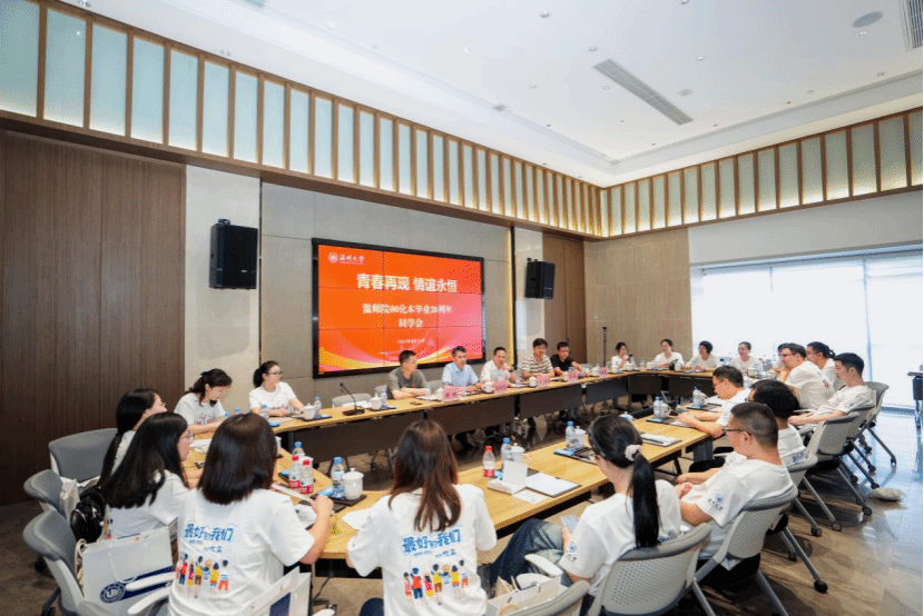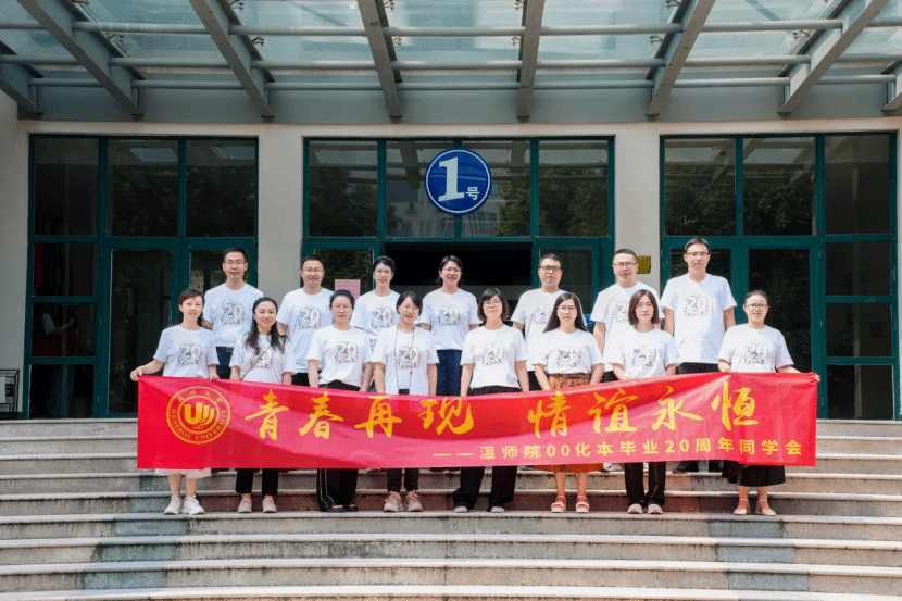 校友们依次发言,真挚地分享了自毕业以来的心路历程与成长故事,重温了那段深厚的同窗情谊,并对母校的悉心培养表达了由衷的感激。与会的班主任和辅导员老师们也满怀深情地回顾了与同学们一起经历的梦想追寻、奋斗拼搏和成长岁月,言辞中满溢着骄傲与自豪。大家在回顾往昔中增进了师生情,在交流碰撞新思想中开拓新路径、打开新格局。习近平总书记强调“无论走得多远,都不要忘记来时的路。”时隔二十年,同学们的所学专业相同但所做的选择不同,尽管所处的岗位有别,但是大家都谨记开启理想大门的起点,一致认同“求学问是,敢为人先”的温大校训点亮了人生路,化材优秀的教风学风奠定了成就未来的基石。